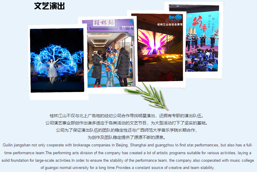桂林江山會(huì)議會(huì)展有限責(zé)公司是一家專業(yè)的MICE公司;是傳統(tǒng)服務(wù)與信息技術(shù)相結(jié)合的科技型公司。 公司立足于線下活動(dòng)的豐富經(jīng)驗(yàn),堅(jiān)持運(yùn)用信息技術(shù)為各類活動(dòng)(項(xiàng)目)提供更優(yōu)質(zhì)與便捷的管理與服務(wù)。公司開(kāi)發(fā)的《冬瓜云服務(wù)與管理系統(tǒng)》《雙線展覽平臺(tái)》《注冊(cè)通》《報(bào)到通》《多點(diǎn)位全景直播平臺(tái)》等應(yīng)用軟件處于行業(yè)領(lǐng)先地位。桂林江山會(huì)議是一個(gè)大家庭,于2012年創(chuàng)立,經(jīng)過(guò)長(zhǎng)期的經(jīng)營(yíng),吸納與培訓(xùn)了大批關(guān)于會(huì)務(wù)服務(wù)、設(shè)計(jì)創(chuàng)意、公關(guān)演藝、會(huì)獎(jiǎng)活動(dòng)、信息技術(shù)等項(xiàng)目的眾多專業(yè)人材,涉及展覽工程搭建、慶典活動(dòng)策劃、影視制作與直播、大型文藝演出、會(huì)獎(jiǎng)旅游、H5、小程序等軟件的開(kāi)發(fā)等眾多業(yè)務(wù)。江山會(huì)議由一支具有超前的營(yíng)銷理念并...